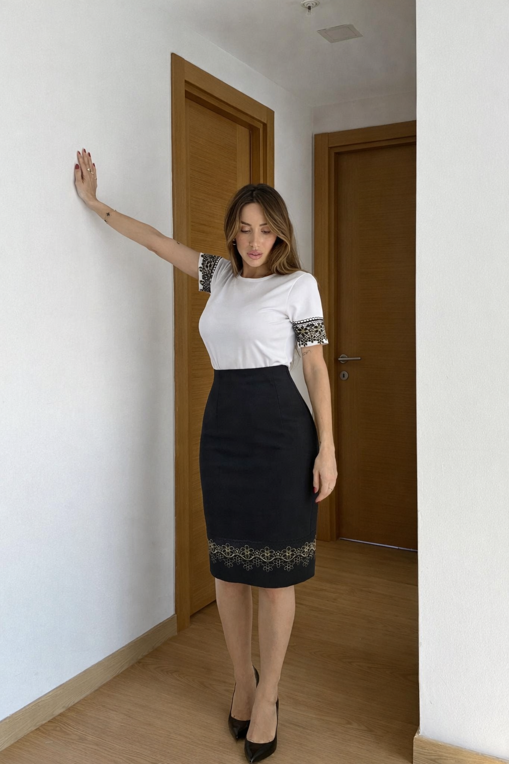 Fusta conica cu talie inalta, ideala pentru birou cat si pentru evenimente speciale.