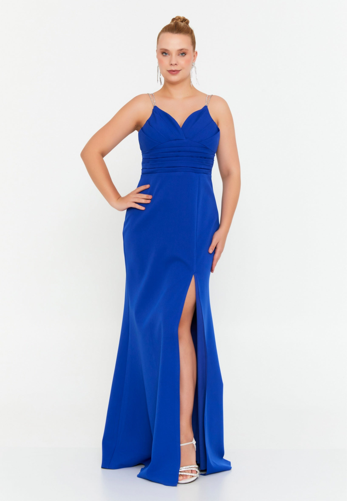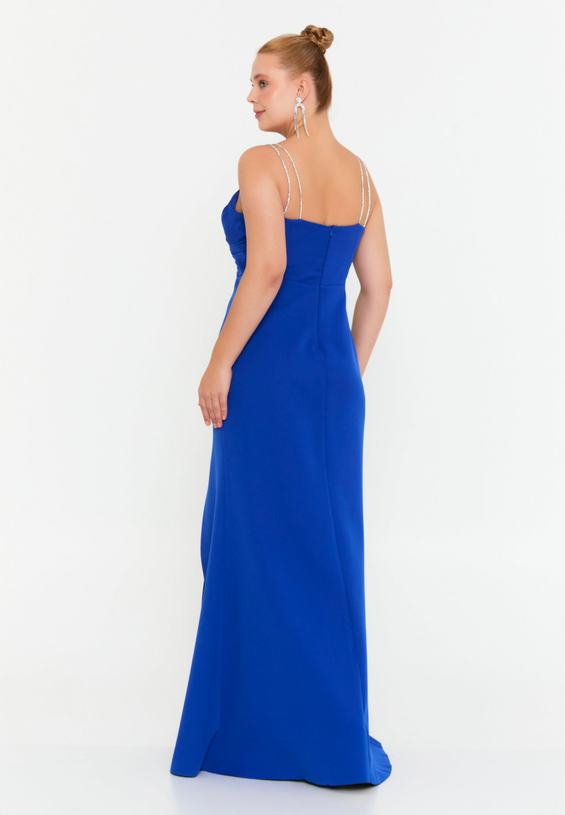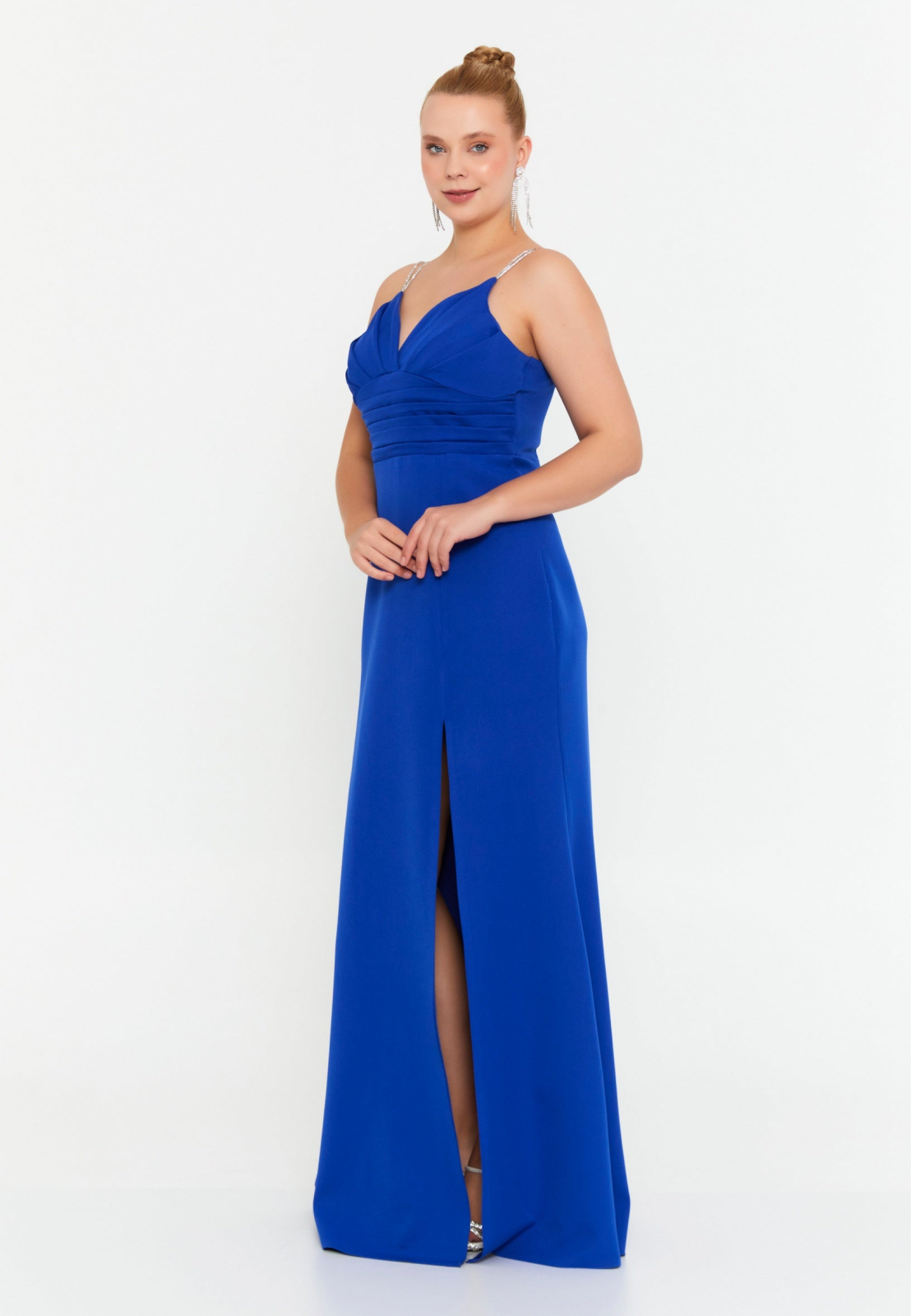 Rochia albastra lunga cu bretele este alegerea ideala pentru aparitii feminine si sofisticate.
