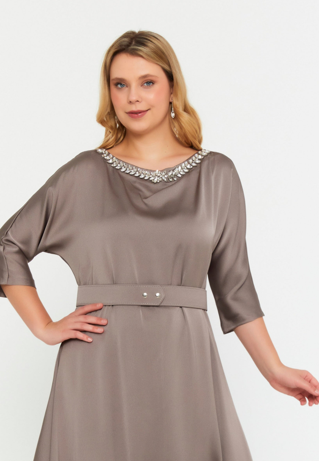 Designul elegant este pus in valoare de pietrele decorative din zona gatului, care adauga un plus de rafinamen si transforma tinuta intr-una ideala pentru evenimente speciale sau ocazii deosebite.